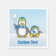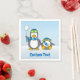 Um pequeno desenho animado de pinguim com bola de neve e um desmaiado. Texto personalizado.