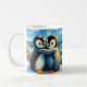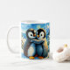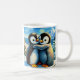 Pinguins gêmeos pés felizes abraçando xícara de ca