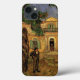 Pine Trees with Figure in the Garden of Saint-Paul Hospital, de Vincent van Gogh, é uma pintura retrato vintage de arte fina pós-impressionista da vida diária que apresenta uma vista de um homem em pé sob árvores de pinheiro nos jardins com um edifício com janelas de persiana e uma varanda ao fundo. Outra pessoa está em pé na porta da frente, a entrada principal do hospital.