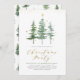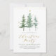 Convide seus convidados de festas em estilo, sejam eles família, amigos ou colegas de trabalho - este design funciona para eventos casuais ou corporativos! Design apresenta uma ilustração aquarela de três pinheiros decorados com estrelas douradas. Os detalhes do seu evento aparecem abaixo com "Festa de Natal" em letras de ouro em chic. No topo deste convite, há uma falsa brilha dourada. A parte de trás do cartão é um padrão de floresta de pinheiros nevados. Personalize com seu nome de família e todos os detalhes de sua festa.