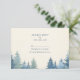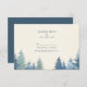Esta placa RSVP apresenta um elegante design de aquarela de árvores verdes em tons de azul e verde, colocado sobre um fundo de creme macio. O texto, com as opções de "aceitar alegremente" ou "recusar lamentavelmente", é simples mas refinado, fazer este cartão ideal para casamentos, eventos especiais ou reuniões formais que abraçam um tema inspirado na natureza ou rústico. A cena tranquila da floresta evoca um senso de calma e de conexão com a natureza, perfeito para eventos ao ar livre ou em áreas florestais.