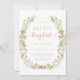 Celebre o primeiro aniversário de sua doce menina com este adorável convite adorado com uma charmosa cor-de-água cor-de-rosa e cruz de morango floral. A delicada interação entre texto verde e rosa adiciona um toque de capricho ao design, criando uma introdução perfeita para a sua celebração.