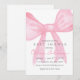 Elegant pink bow baby shower invitation template. Fully editable on Zazzle. Personalize text, colors, and fonts to match your baby shower theme. Print at home or professionally.