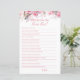 Rose pink floral bridal shower game. How Well do you know the bride? Bridal Shower Game