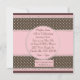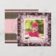 Belíssimas bordas cor-de-rosa e marrom e padrões com um local para carregar sua linda foto do novo bebê e adicionar as informações de festa de aniversário do seu próprio bebê na área personalizada.