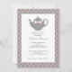 Um lindo padrão de quatrefoil cor-de-rosa sobre uma cinza macia é embelezado com uma bule de cinza correspondente adornada com um arco rosa charmoso. Faz uma design para qualquer festa de chá como um casamento ou chá de fraldas. Os produtos de coordenação incluem adesivos de favor, cartões de agradecimento, etiquetas de correio e endereços.