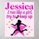 Eu corro como um campeão, tento manter o Poster rosa bonito personalizado. Motivar seu excelente corredor com um de nossos extraordinários designs de Execução no Camisetas, Roupa, Jewelry, Drink ware, Bedroom décor, Posters e uma seleção excepcional de presentes em www.zazzle.com/mysportsstar. Esta Rota e Garota de Campo era para ser uma Estrela Esportiva. Nossos posters personalizados e a arte de muro, únicos e bonitos, fazem um presente precioso para os aniversários, feriados e qualquer ocasião. Este Runner é rápido como um raio.