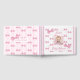 Este adorável livro de hóspedes de chá de fraldas tem um bebê vintage na frente com arcos cor-de-rosa bonito e um lugar para você adicionar o nome da mãe do bebê na área personalizada. Na parte traseira, há listras cor-de-rosa e branca com arcos e um lugar para adicionar a data do chá de fraldas. Esta é uma maneira fácil de organizar o chá de fraldas junto como uma bela manutenção para a "mãe ser".