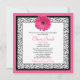 Chic, menina, gerbera rosa-quente convite de morcego mitzvah. As cores neste convite à margarida rosa, Bat Mitzvah, são rosa-quente, preto e branco e apresentam a margarida rosa-rosa sempre popular. Nota: Este é um design sem nenhum embelezamento em relevo ou em 3D. A flor da margarida rosa-gerbera está impressa no convite.