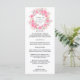 Nosso cardápio de casamento garden chic apresenta seus pratos de entrada, principais e sobremesas em letras elegantes, com seus nomes circulados por uma grinalda botânica rosa de rosas em aquarela e folhas e folhagens. Coordena com nossa coleção de casamento Pink Love Wreath.