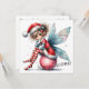 Celebrate the season with a whimsical holiday design featuring a charming Christmas fairy perched atop a large pink ornament. Dressed in a red outfit with white fur trim, striped stockings, and a Santa hat adorned with holly, she rests in a contemplative pose with shimmering pastel wings. Surrounded by pine branches, golden stars, and festive decorations, this enchanting scene blends fantasy with traditional Christmas cheer. On the reverse side, a heartfelt greeting is included with the sender’s name, offering a personal and joyful message perfect for sharing holiday magic with loved ones. Ideal for those who adore playful elegance and imaginative seasonal charm.