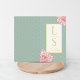 Delicar o padrão verde asiático com pénicas cor-de-rosa pastel e iniciais em negrito.