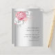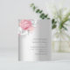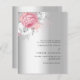 Um fundo de olhar mal prateado. Decorado com rosas rosa e brancas. Personalize e adicione seus nomes e detalhes do casamento. 1 folha = 1 convite impresso de borda a borda.