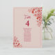 Guide your guests effortlessly with this elegant pink and red floral wedding seating chart table card, designed with delicate botanical line art, soft blush tones, and classic red typography. This refined layout clearly displays the table number and guest names, making it perfect for receptions, formal dinners, and modern romantic celebrations.