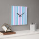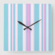 Um Relógio de Parede Quadrado, com um padrão de listras cor-de-rosa, turquesa e poltrona branca, parte da coleção 'Dias de Verão' Posh & Painterly. .