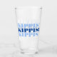 Copo de cerveja temático Kippis (saúde!) azul e branco.