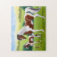 O design original das belas artes de um cavalo tricolored da pintura e de seu potro pelo artista Carolyn McFann do estúdio de ronrom de dois gatos imprimiu em um quebra-cabeça de serra de vaivém da qualidade para amantes do cavalo.