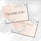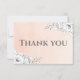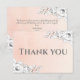 Fundo de gradação de cor-de-água cor-de-rosa, cor-de-rosa-branca, decorado com delicado e arranjo floral branco do estilo de esboço moderno no canto superior direito e canto inferior esquerdo. Fonte de serifa em carvão para o obrigado personalizável da tipografia. A parte traseira do cartões de agradecimentos apresenta os mesmos arranjos florais com uma combinação elegante de fontes de caligrafia e fontes serif para a mensagem de obrigado personalizado. Um monograma do tipo medalhão com as iniciais das meninas de aniversário em caligrafia elegante no fundo, seguido de data de eventos.