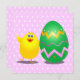 Pintinho bonito e óvulo colorido de Páscoa, ilustração de desenho animado