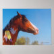 Fotografia de um verdadeiro Cavalo de Tinta, com trabalho de arte de mão e penas coloridas.