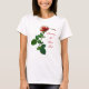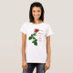 Camiseta branca básica de mulheres, com a imagem de uma linda rosa branca, pintada de vermelho e o texto "Pintura do Rosa Vermelho" impresso em um fantástico roteiro vermelho. Veja toda a coleção de Roupa Wonderland nos TOUCHES ESPECIAIS | Seção Favoritos para festas.