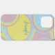 Esta pintura abstrato moderna de círculos cor-de-rosa, azuis e amarelos cor-de-rosa pastel decora esta capas de iphone bonito. Personalize esta capas de iphone atual e colorida adicionando seu texto ou excluindo-o para deixá-lo vazio. É baseado em uma peça de arte original por © One Artsy Momma.
