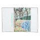 Abstrato Paisagem que representa margaridas e outras flores coloridas florescendo ao longo de um riacho sob árvores nuas ramificadas, com serras sob um céu azul no fundo. Contém as cores branco, amarelo, preto, ouro, azul. verde, roxo, castanho, vermelho, azul claro, turquesa, verde-pinho, laranja.