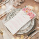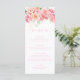 Este menu apresenta um primavera floral cor-de-rosa pincelado. Adicione um obrigado aos seus convidados no verso do menu ou deixe-o vazio. O cabeçalho do script é uma imagem que não pode ser editada. Todo o outro texto é totalmente editável. Para personalização mais avançada deste design, basta selecionar o botão "Personalizar" acima.