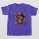 A camiseta infantil é mostrada com um impressão gráfico do crânio de pirata. Cor Roxo Personalize este item ou comprar como está.