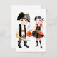 Vestido como um pirata e é exatamente isso que é essa design. Este garoto e garota se vestiram e piratas e tem fantasias fantásticas. Um design excelente para qualquer ocasião pirata. Este pirata e design de menina parecem excelentes nestes convites
