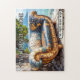 Quebra-cabeça com uma ilustração cômica de uma bancada do estilo retrosteampunk com um mapa mundial na praia. Lindo como entretenimento para uma casa de praia.