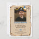 Convite de aniversário de fotos pirata, com uma foto personalizável em papel manuscrito antigo e estilizado para a festa de aniversário do seu garoto pirata. Uma capa frontal será uma escolha excelente para o design. Carregue sua foto e ajuste-a sob o chapéu pirata.
