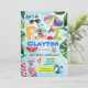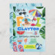 QUALQUER IDADE - basta editá-la e adicionar sua própria foto. Um convite bonito e chique para o aniversário do seu filho. Pegue isso agora! (a versão da menina também está disponível em nosso compro!) Tema: Festa de Piscina de Verão. Cores Tropicais: Azul, verde, roxo, laranja, amarelo. Estilo: Aquarela. Design: Folhas tropicais, bola de praia, óculos escuros, parasol colorido, sorvete, flocos de sacudir.