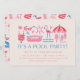 Esta Piscina e Convite de festas têm um design divertido moderno com gráficos coloridos em vermelho, rosa e azul. Faça um salto com seus convidados de festa! Personalize facilmente seu convite usando os recursos de edição do zazzle.