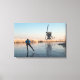Tela impressa de um atleta patinando em um rio congelado passado por lenha de fosco e um moinho de vento numa bela manhã de inverno nos Países Baixos.