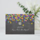 PixDezines rsvp fiesta... luzes colores suspensas bat mitzvah sobre fundo chalkboard removível. Gráfico vetorial. Cartão perfeito para qualquer ocasião: aniversário, reunião familiar de aniversário ou para um casamento de destino ou apenas um luau familiar. Basta clicar no botão "personalizar" >> e ir para a guia "editar", >> clicar em "fundo" e escolher a cor. com
