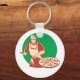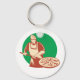 Um padeiro de pizza com uma pizza grande pronta para cozinhar. Esta design parece realmente eficaz nestes Chaveiro