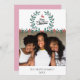 Cartão de Natal personalizado da família com coroa de louros florais e fundo cor-de-rosa de menta. Placa de cartões de natal na moda moderna. Personalize com seu nome de família e ano de feriado.