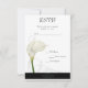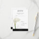 Esta placa RSVP tem uma imagem de um lírio branco de solteiro com um florescimento bonito no fundo, e uma simples faixa preta com florescimento no fundo. Totalmente personalizável frente e verso, com texto sugerido para seus convidados aceitarem seu convite. Vinculando convites, postagem, Salvar itens de Data e mais disponíveis na minha loja.