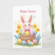 Felz pascoa com esses animais bonitos como coelhinho de Páscoa ou pintinho de bebê. Junte-se à caçada de ovos de Páscoa em primavera com cores vibrantes e alegria, doces e uma fantasia floral vintage. Coelho bonito com flores. Um cartão de saudações de felz pascoa com animais bonitos.