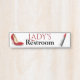 Placa conhecida da porta do local de repouso da senhora com gráficos de um par vermelho de saltos altos e de um tubo do batom vermelho. O texto feito sob encomenda vermelho e preto pode ser personalizado para ler o que você quer.