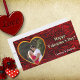 Cartão de Saudação do Namorados 8x4 fotográfico. Personalize seu nome e foto com este quadro em forma de coração dourado. Tecido decorativo vermelho com fundo abstrato. Personalize-o ainda mais para mais alterações. Precisa de ajuda ou quer algo feito para você e entre em contato com Sandy em admin@giftsyoutreasure.com