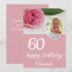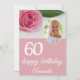 Placa de aniversário 60ª Flor Rosa Rosa Rosa Rosa Rosa Rosa Rosa Rosa Rosa Rosa Rosa Cor-de-rosa. A carta é rosa e tem uma rosa linda. O texto está em um roteiro branco. Adicione seu nome, foto e mensagem no verso.