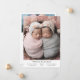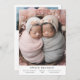 Cartão de nascimento minimalista e simples, com a frase "duas abençoadas". Este é um cartão de anúncio de nascimento para gêmeos! Adicione suas fotos, estatísticas de natalidade e uma mensagem! Basta clicar no botão editar/personalizar para personalizar este design.