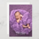 Anuncie a chegada do seu bebê com nosso anúncio de nascimento elegante, com uma foto vertical do seu pequeno com seu nome maravilhosamente sobreposto em um roteiro de caligrafia branca. Você pode personalizar o anúncio com o meio e sobrenome do seu bebê. No verso, há espaço para uma fotografia adicional, juntamente com as estatísticas de natalidade e uma mensagem pessoal.