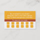 Placa de aperto de Cartão de visita de fidelidade com 12 socos/ carimbagem guardados na parte traseira do cartão. Totalmente personalizável e editável. Entre na oferta de recompensa de suas empresas no espaço fornecido. Perfeito para um restaurante de pizza, pizzaria, compro de bagel, assento de cachorro quente, deli, compro de sanduíche ou caminhão de comida.