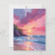 Placa de Aquarela Rosa Sunset Ocean Beach Waves
