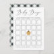 Cartão de jogo de bingo de chá de fraldas bonito com "Baby Bingo" no topo de uma escrita de caligrafia negra e uma abóbora de xadrez laranja como ponto central do bingo. Personalize com o nome da futura mãe e a data do chá de fraldas na base. A design coordena-se com a nossa coleção Rustic Xadrez Pumpkin.