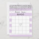 Placa de bingo chá de panela com design brilhante prateado falso e faixa púrpura clara de fundo aquarela.