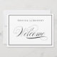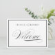 Placa de casamento clássica e discreta em preto e branco com um toque moderno com a escrita elegante da palavra "Boas-Vindas" e uma borda preta. Moldura para o local do casamento, mesas de cerimônia e recepção para guiar os convidados.